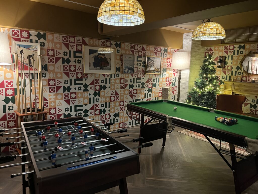 2階にあるプライベートダイニング「Alpine Lounge」は、大人数でワイワイやりたいグループにぴったりの空間。そこには専用のゲームルームも併設されていて、フーズボール、巨大ジェンガ、ビリヤードなどみんなで楽しめるアイテムが♪