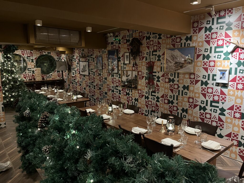 Chalet des Alpes は、12月2日から1月15日までの期間限定ポップアップ。場所はソーホーの 18 Shelley Street。ディナーは火曜〜日曜の18:00からで、クリスマスイブ、クリスマス、ボクシングデー(12月24〜26日)はランチ営業(12:00〜15:00)もあるそうです。