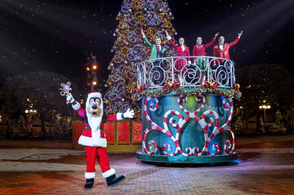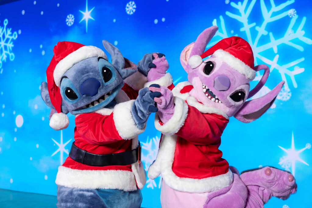 - サンタ姿のミッキー、グーフィー、スティッチ&エンジェルも登場し、パーク全体が華やかに。