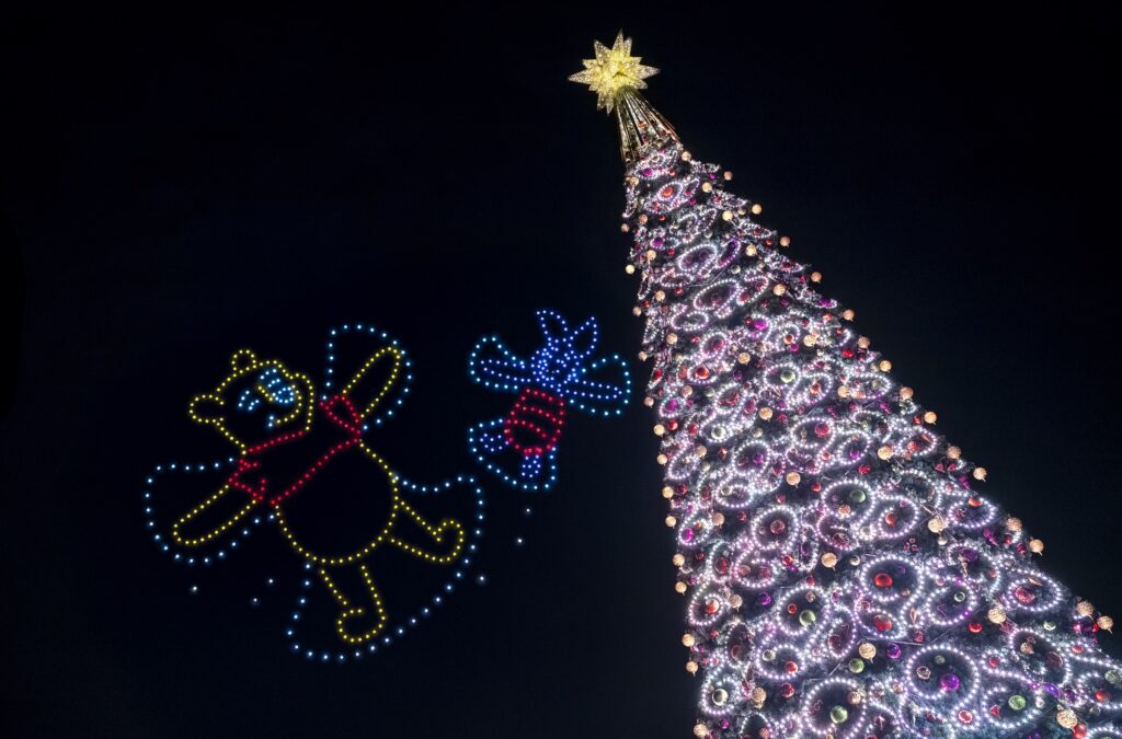 メインストリートUSAでは「ホリデー・ウィッシュ・カム・トゥルー」ツリー点灯式を開催。雪の演出やプロジェクションに加え、ドローンショーも登場!