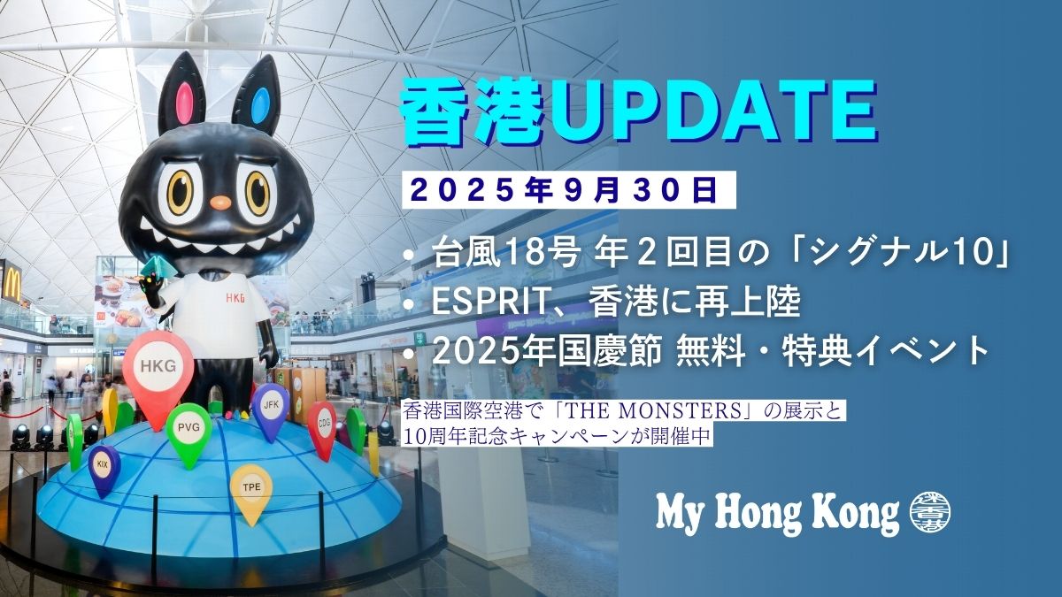 香港国際空港(HKIA)では、人気キャラクター「THE MONSTERS」のアートインスタレーションと10周年記念キャンペーンが開催中です。空港内には、高さ7メートルの「KING MON」の世界最大級のアート作品が展示され、出発フロア(L7)のFカウンター後方で見ることができます。また、旅行をテーマにしたアクセサリーをまとった「LABUBU」や「ZIMOMO」の1.5メートルの展示が4体、出発フロア(L6)の制限エリアで展示されています(Jaeger-LeCoultreやCartierなどの店舗付近)。
