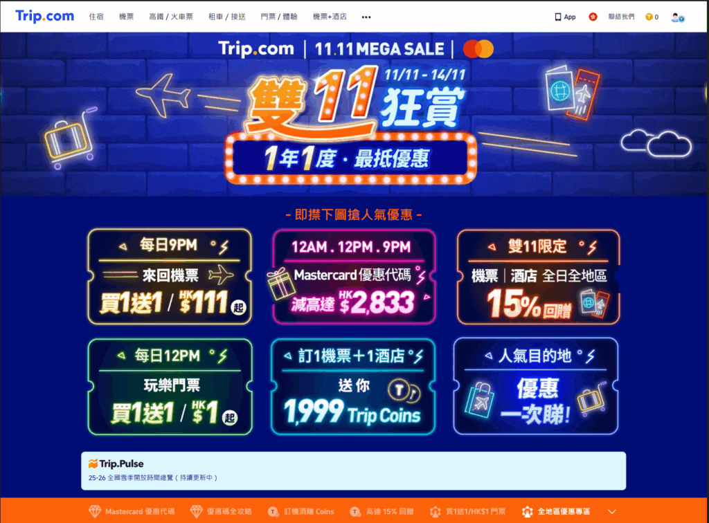 - Trip.com 香港|雙11狂賞・1年1度最抵優惠