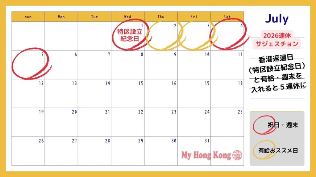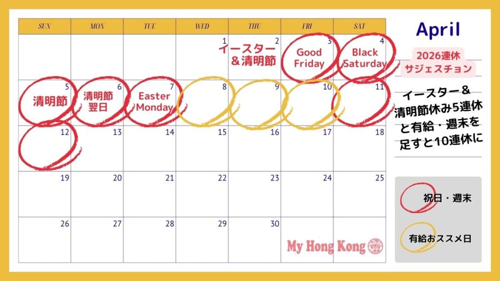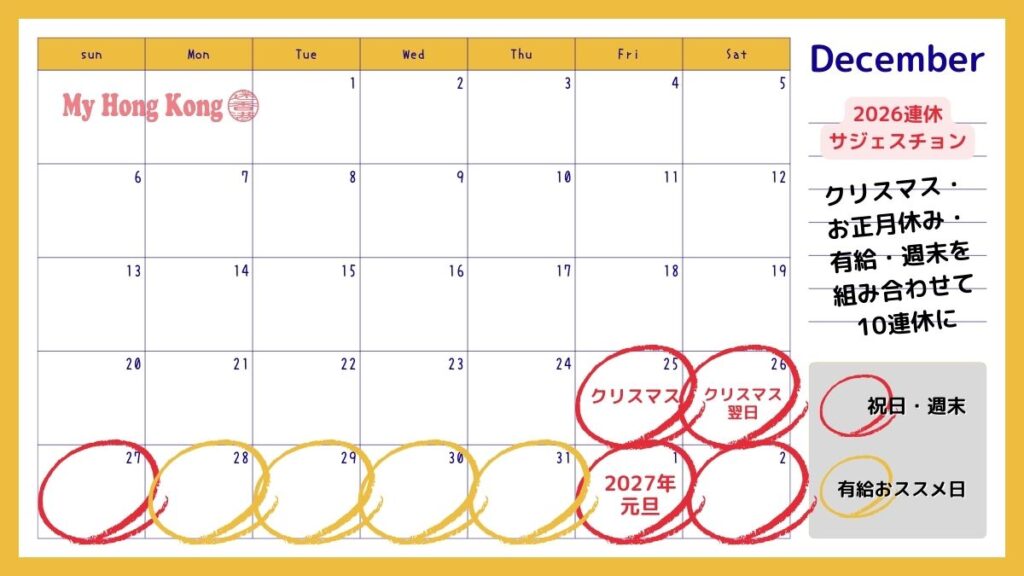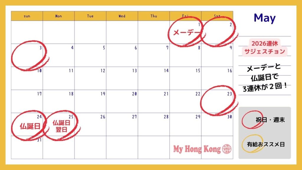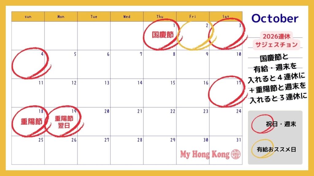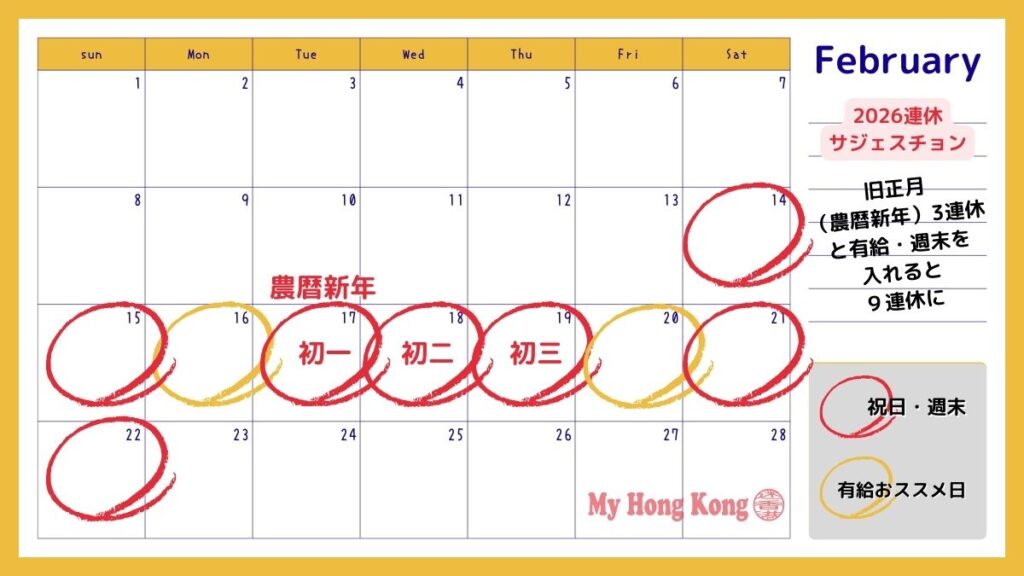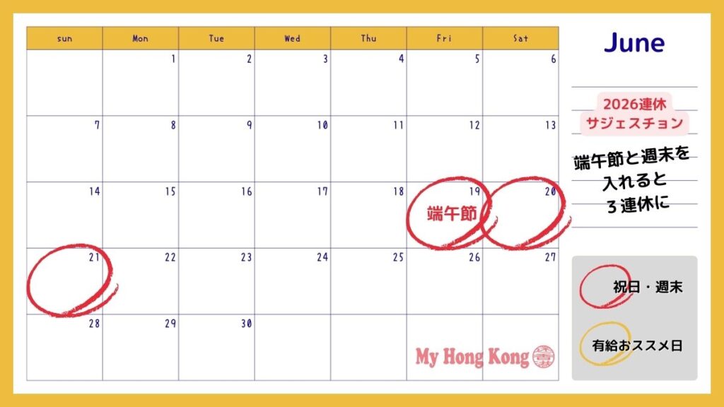 2026年の香港の祝日にフォーカスしたカレンダーを作成しました!香港の祝日は旧暦に基づくものが多く、毎年日付が変則的になるのが特徴です。