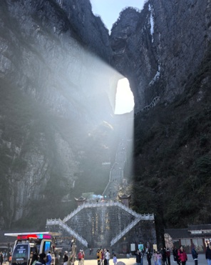326メートルの高さのケーブルカー「百龍天梯」で袁家界風景区へ。映画『アバター』のモデルとなったハレルヤ山を訪問します。