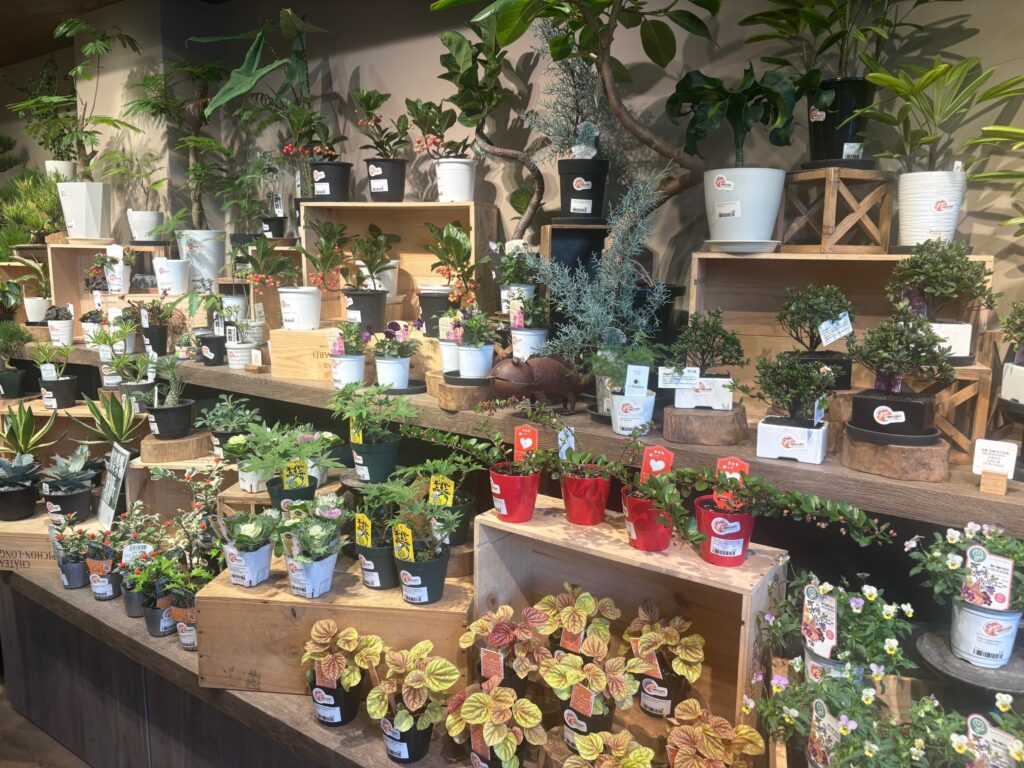 ブーケや切り花、鉢植え、観葉植物もあります。