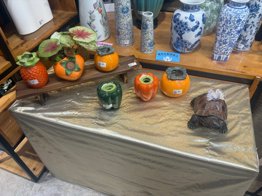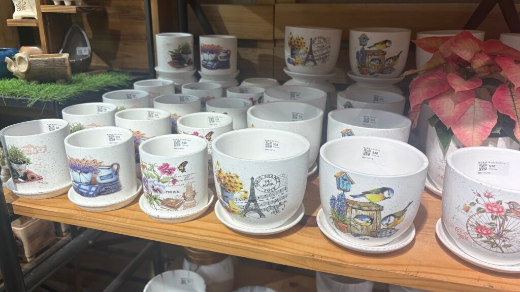 たくさんの鉢植えや花瓶が並んでいます。日本ではあまり見かけないように大胆なデザインも多くてみていてとてもワクワクします〜!