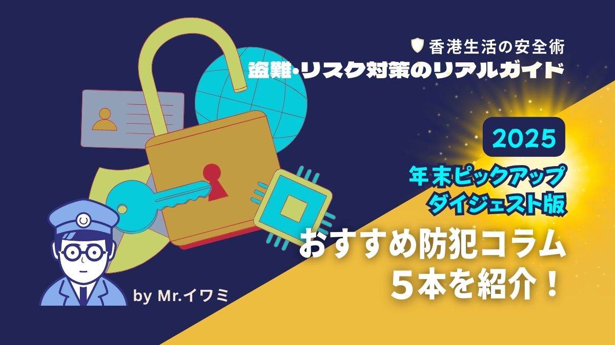 【香港生活の安全術!盗難・リスク対策のリアルガイド 】香港で生活する皆さんに向けたセキュリティコラム。2025年は全18回お届けさせて頂きました。今回は、皆さんに読んで頂きたい注目トピックを厳選したセキュリティコラムダイジェストまとめ記事です!
