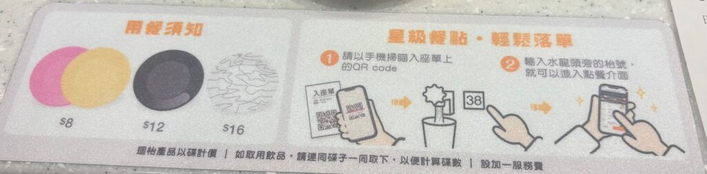お皿の色によって値段が分かれているというのは日本と同じですね。流れていないメニューの注文はQRからできます。