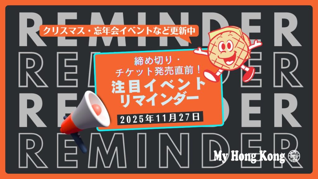 香港ではイベントが盛りだくさん! ここでは、申込締切・チケット発売直前のイベントを定期的にリストアップします! 注目イベントリマインダー チケット発売中 チケット発売中 チケット発売中 申込受付中 申込締切:2025/11/14 チケット発売中 チケット発...